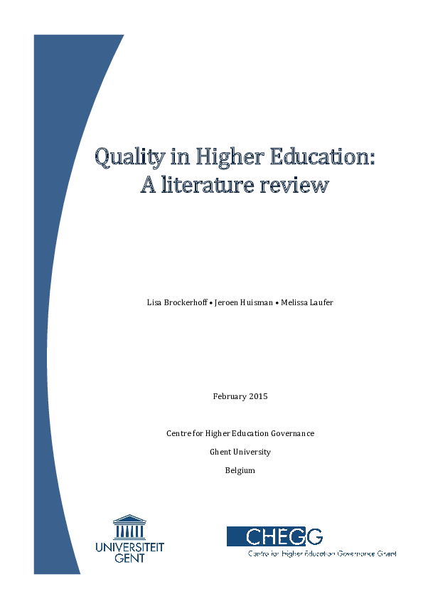 Pdf Quality In Higher Education A Literature Review Jeroen Huisman And Lisa Brockerhoff Academia Edu